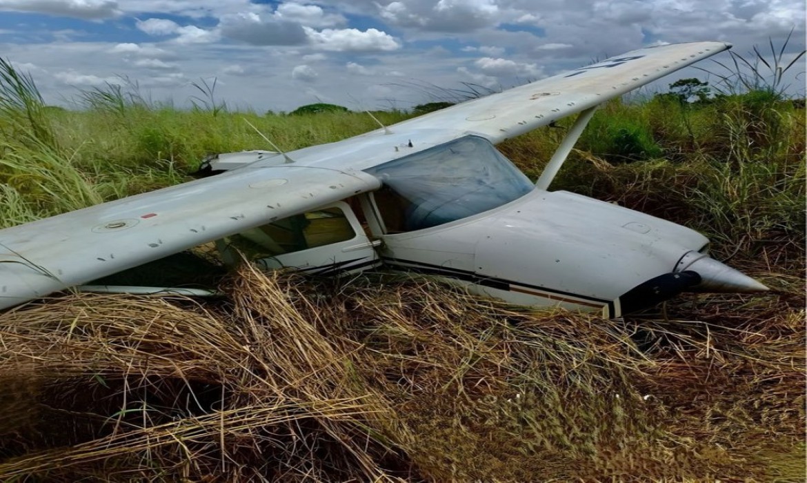 A aeronave, de pequeno porte, estava com o prefixo adulterado com adesivos e contava apenas com o assento do piloto, o que reforça a suspeita de uso no garimpo ilegal para transporte de insumos e minérios.