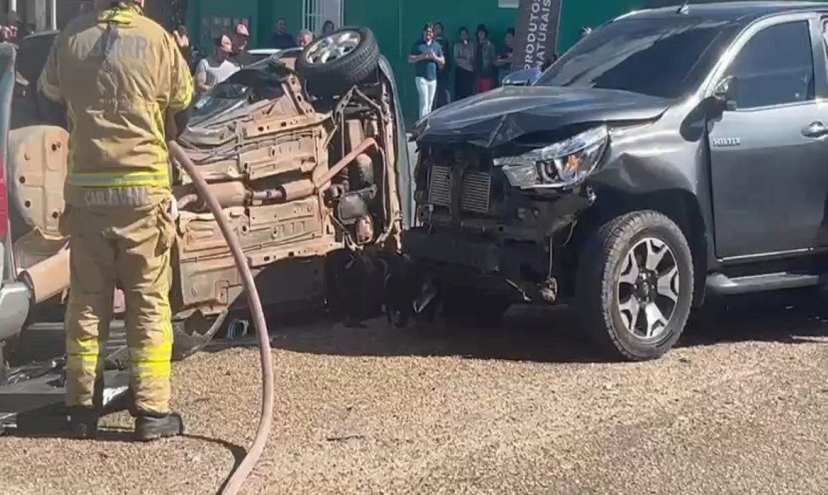 O motorista da Hilux estava sozinho e sofreu apenas ferimentos leves.