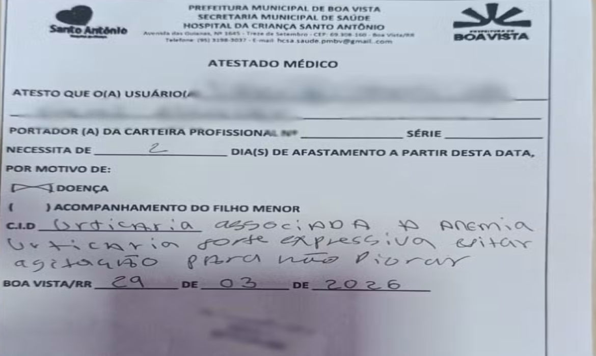 A direção da escola decidiu acionar a Polícia Militar após identificar indícios de irregularidade nos documentos entregues pela aluna. Entre os pontos observados estavam a repetição da mesma assinatura e a indicação de atendimento no Hospital da Criança Santo Antônio.